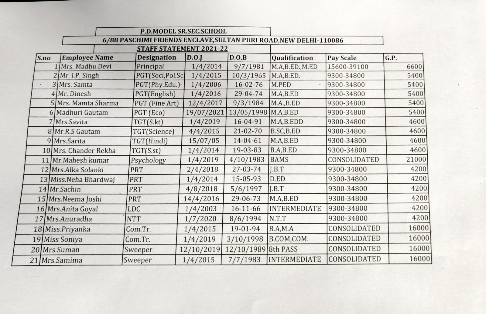 staff statement (2021-2022)